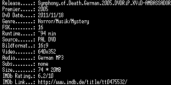 | FiLENAME: | Symphony.of.Death.German.2005.DVDRiP.XViD-AMBASSADOR.avi |