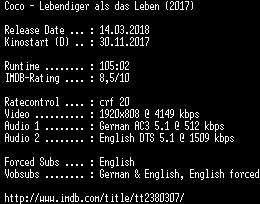 | FiLENAME: | Coco.Lebendiger.als.das.Leben.2017.German.DL.1080p.BluRay.x264-COiNCiDENCE.mkv |