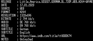 | FiLENAME: | Little.America.S01E07.GERMAN.DL.720P.WEB.H264-WAYNE.mkv |