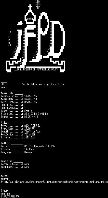 | FiLENAME: | Nackte.Tatsachen.Do.you.know.Ibiza.German.2007.AC3.BDRiP.x264-iFPD.mkv |