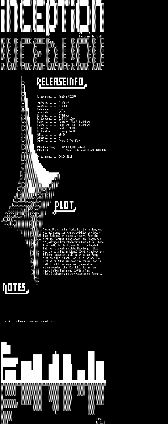 | FiLENAME: | Twelve.2010.German.DL.AC3.BDRip.XviD-iNCEPTiON.avi |