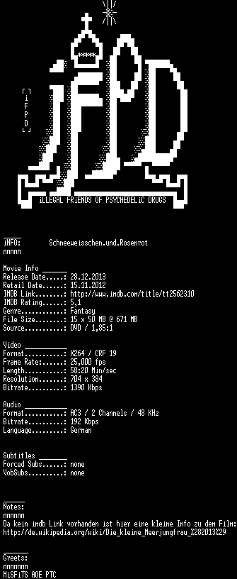 | FiLENAME: | Schneeweisschen.und.Rosenrot.German.2012.AC3.DVDRiP.x264-iFPD.mkv |