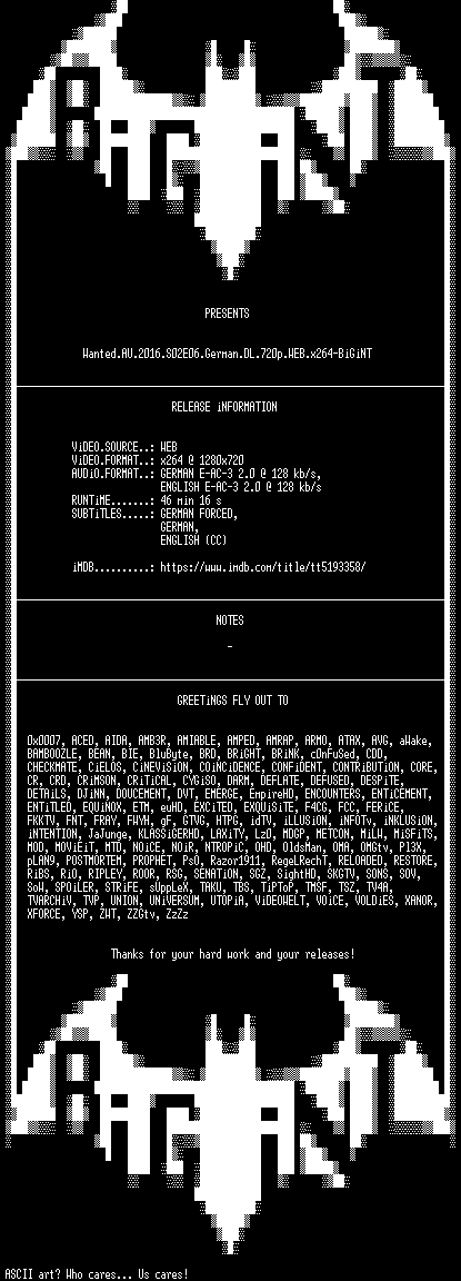 | FiLENAME: | Wanted.AU.2016.S02E06.German.DL.720p.WEB.x264-BiGiNT.mkv |