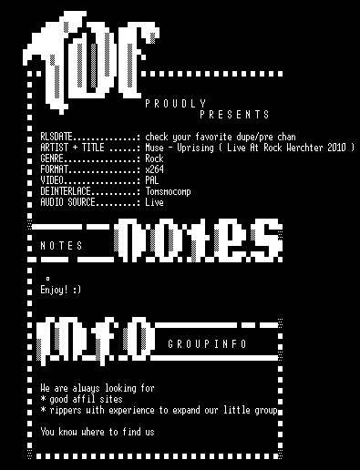 | FiLENAME: | Muse-Uprising_(Live_At_Rock_Werchter_2010)-x264-2010-TDF.mkv |