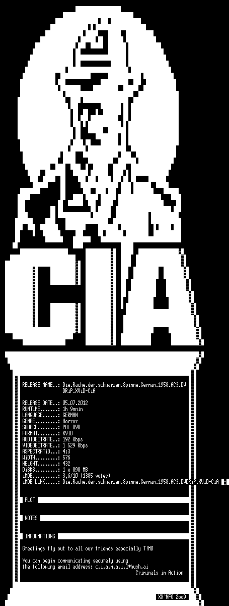 | FiLENAME: | Die.Rache.der.schwarzen.Spinne.German.1958.AC3.DVDRiP.XViD-CiA.avi |