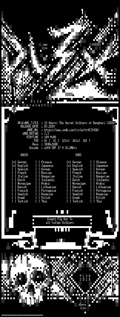 | FiLENAME: | 13.Hours.The.Secret.Soldiers.of.Benghazi.German.DL.2160p.UHD.BluRay.x265-PL3X.mkv |