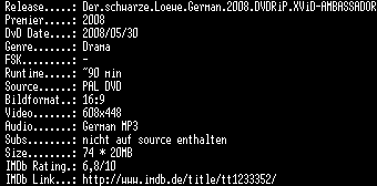 | FiLENAME: | Der.schwarze.Loewe.German.2008.DVDRiP.XViD-AMBASSADOR.avi |