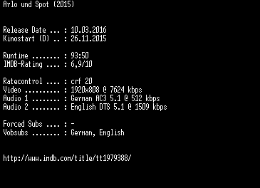 | FiLENAME: | Arlo.und.Spot.2015.German.DL.1080p.BluRay.x264-EXQUiSiTE.mkv |