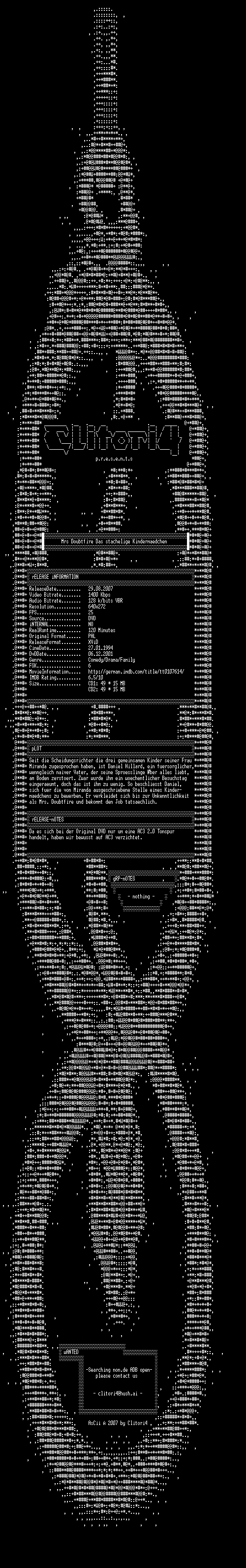 | FiLENAME: | Mrs.Doubtfire.Das.stachelige.Kindermaedchen.German.1993.DVDRiP.READNFO.XViD-Clitori4.CD2.avi |