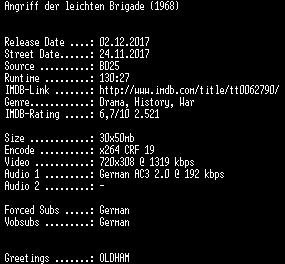 | FiLENAME: | Angriff.der.leichten.Brigade.German.REMASTERED.1968.AC3.BDRip.x264-SPiCY.mkv |