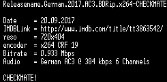 | FiLENAME: | Freigaenger.Im.Hafturlaub.am.falschen.Ort.German.2015.AC3.BDRip.x264-CHECKMATE.mkv |