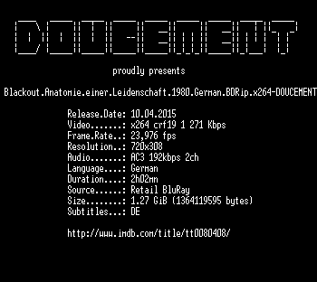 | FiLENAME: | Blackout.Anatomie.einer.Leidenschaft.1980.German.BDRip.x264-DOUCEMENT.mkv |