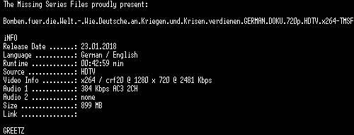 | FiLENAME: | Bomben.fuer.die.Welt.-.Wie.Deutsche.an.Kriegen.und.Krisen.verdienen.GERMAN.DOKU.720p.HDTV.x264-TMSF.mkv |