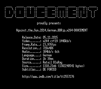 | FiLENAME: | Against.the.Sun.2014.German.BDRip.x264-DOUCEMENT.mkv |