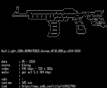 | FiLENAME: | Half.Light.2006.REMASTERED.German.AC3D.BDRip.x264-GSG9.mkv |