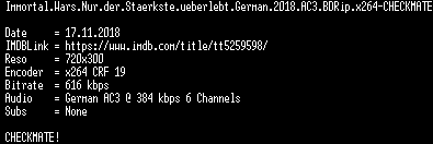 | FiLENAME: | Immortal.Wars.Nur.der.Staerkste.ueberlebt.German.2018.AC3.BDRip.x264-CHECKMATE.mkv |