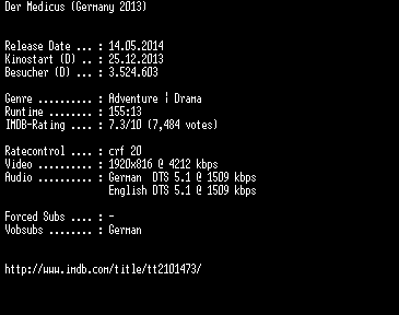 | FiLENAME: | Der.Medicus.German.DL.1080p.BluRay.x264-EXQUiSiTE.mkv |