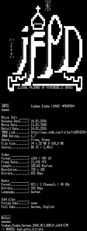 | FiLENAME: | Sieben.Diebe.German.1960.AC3.BDRiP.x264.PROPER-iFPD.mkv |