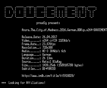 | FiLENAME: | Asura.The.City.of.Madness.2016.German.BDRip.x264-DOUCEMENT.mkv |