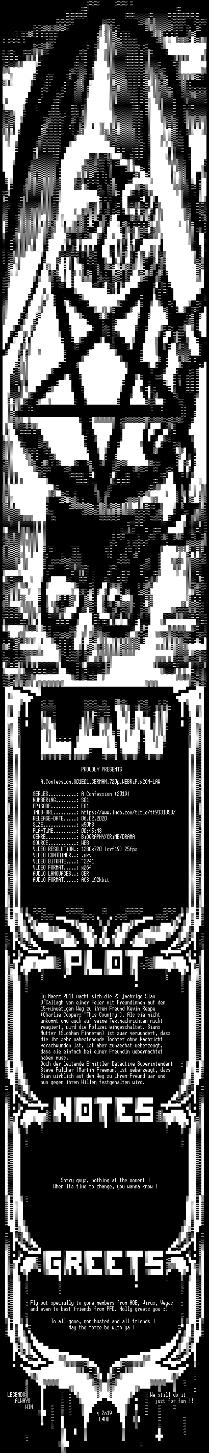| FiLENAME: | A.Confession.S01E01.GERMAN.720p.WEBRiP.x264-LAW.mkv |