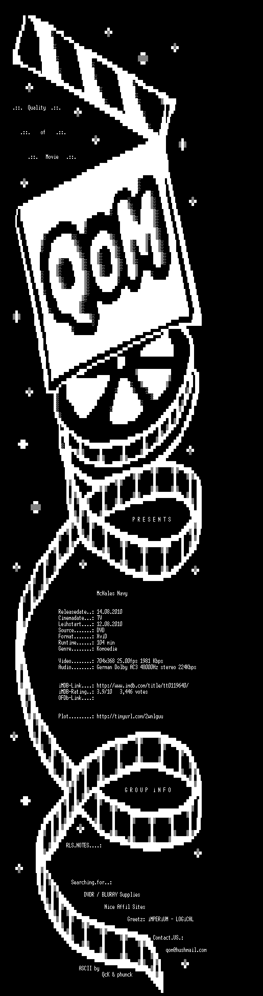 | FiLENAME: | McHales.Navy.German.1997.AC3.DVDRip.XviD-QoM.avi |