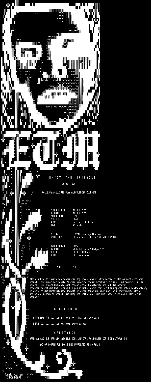 | FiLENAME: | Rec.3.Genesis.2012.German.AC3.BDRiP.XViD-ETM.avi |