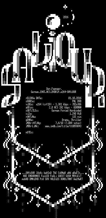 | FiLENAME: | Der.Faenger.German.1965.AC3.DVDRiP.x264-SAViOUR.mkv |