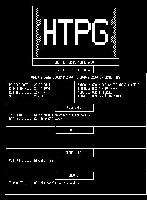 | FiLENAME: | Old.Shatterhand.GERMAN.1964.AC3.DVDRiP.X264.iNTERNAL-HTPG.mkv |