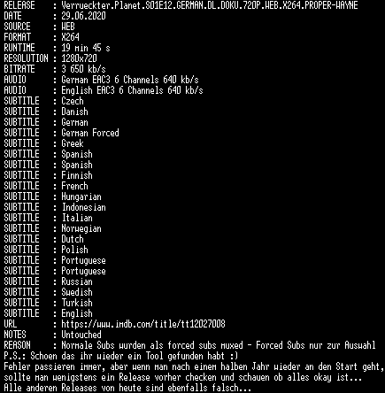 | FiLENAME: | Verrueckter.Planet.S01E12.GERMAN.DL.DOKU.720P.WEB.X264.PROPER-WAYNE.mkv |