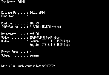 | FiLENAME: | The.Rover.2014.German.DL.1080p.BluRay.x264-EXQUiSiTE.mkv |