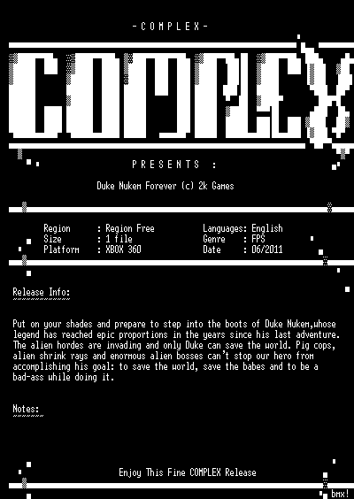 | FiLENAME: | Duke.Nukem.Forever.XBOX360-COMPLEX.iso |