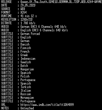 | FiLENAME: | Queen.Of.The.South.S04E10.GERMAN.DL.720P.WEB.X264-WAYNE.mkv |