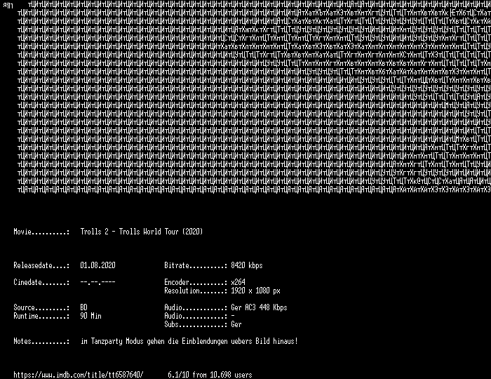| FiLENAME: | Trolls.2.Trolls.World.Tour.2020.Tanzparty.Modus.German.1080p.BluRay.x264.REPACK-LizardSquad.mkv |