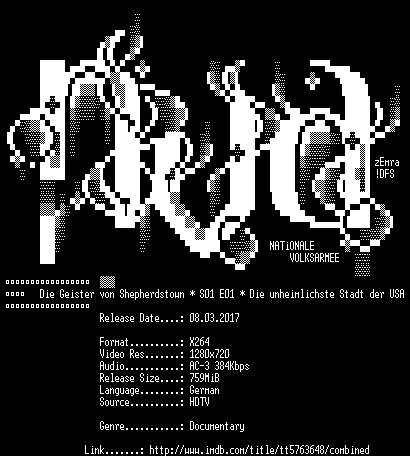 | FiLENAME: | Die.Geister.von.Shepherdstown.S01E01.Die.unheimlichste.Stadt.der.USA.GERMAN.DOKU.HDTV.720p.x264-NVA.mkv |