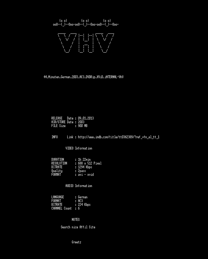 | FiLENAME: | 44.Minuten.German.2003.AC3.DVDRip.XViD.iNTERNAL-VhV.avi |