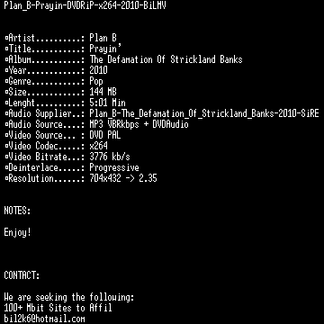 | FiLENAME: | Plan_B-Prayin-DVDRiP-x264-2010-BiLMV.mkv |