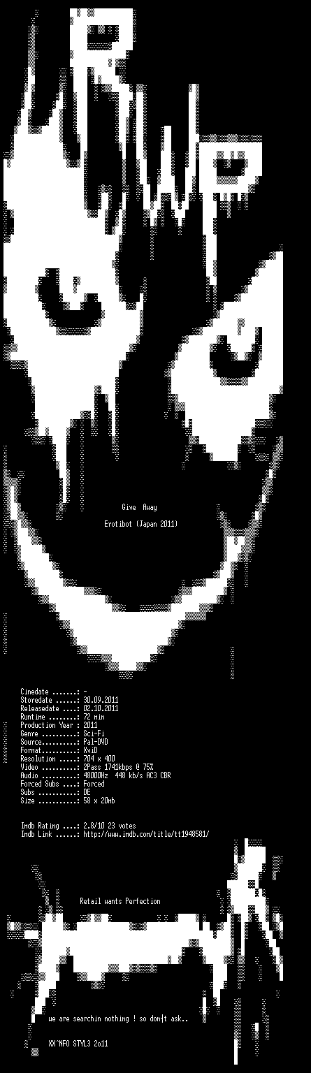 | FiLENAME: | Erotibot.German.2011.AC3.DVDRip.XViD-RWP.avi |