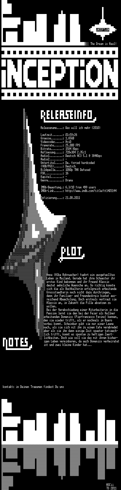 | FiLENAME: | Was.will.ich.mehr.2010.German.AC3.HDRip.XviD-iNCEPTiON.avi |