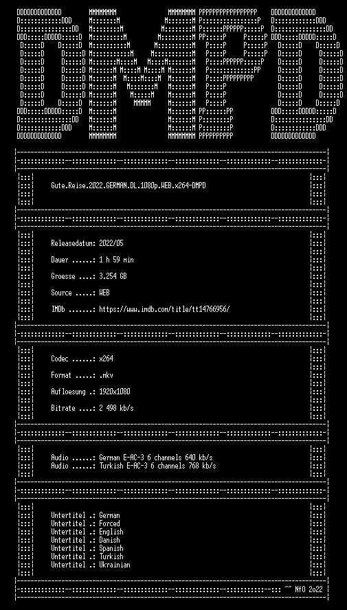 | FiLENAME: | Gute.Reise.2022.GERMAN.DL.1080p.WEB.x264-DMPD.mkv |