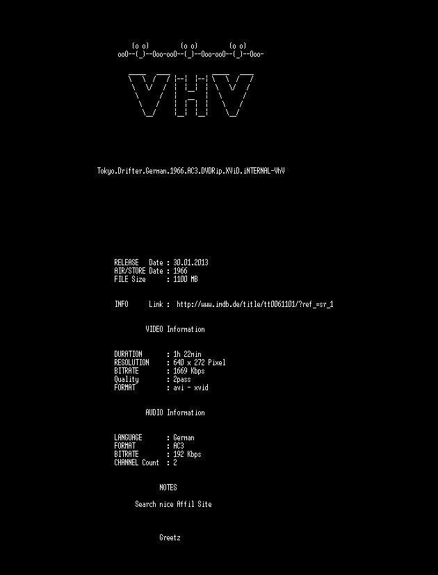 | FiLENAME: | Tokyo.Drifter.German.1966.AC3.DVDRip.XViD.iNTERNAL-VhV.avi |