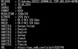 | FiLENAME: | 13.Geboden.S01E12.GERMAN.DL.720P.WEB.X264-WAYNE.mkv |