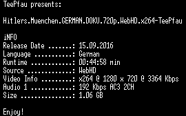 | FiLENAME: | Hitlers.Muenchen.GERMAN.DOKU.720p.WebHD.x264-TeePfau.mkv |