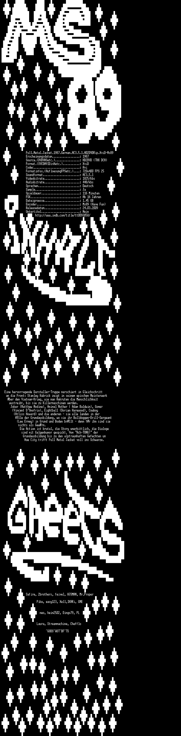 | FiLENAME: | 087.Full.Metal.Jacket.1987.German.AC3.5.1.HD2DVDRip.XviD-Ms89.avi |