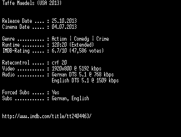 | FiLENAME: | Taffe.Maedels.EXTENDED.German.DL.1080p.BluRay.x264-EXQUiSiTE.mkv |