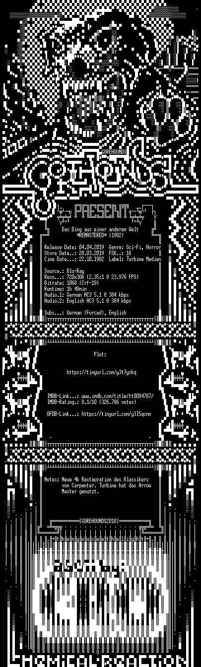 | FiLENAME: | Das.Ding.Aus.Einer.Anderen.Welt.1982.REMASTERED.GERMAN.BDRiP.x264-GOREHOUNDS.mkv |