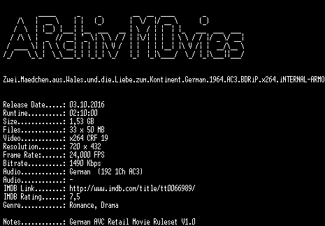 | FiLENAME: | Zwei.Maedchen.aus.Wales.und.die.Liebe.zum.Kontinent.German.1964.AC3.BDRiP.x264.iNTERNAL-ARMO.mkv |