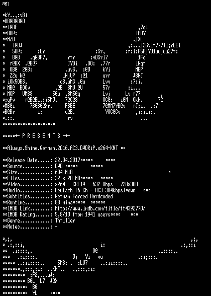 | FiLENAME: | Always.Shine.German.2016.AC3.DVDRiP.x264-KNT.mkv |