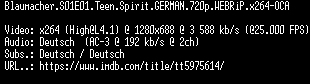 | FiLENAME: | Blaumacher.S01E01.Teen.Spirit.GERMAN.720p.WEBRiP.x264-OCA.mkv |