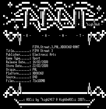 | FiLENAME: | FIFA.Street.3.PAL.XBOX360-RANT.iso |