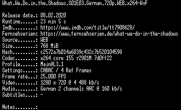 | FiLENAME: | What.We.Do.in.the.Shadows.S01E03.German.720p.WEB.x264-WvF.mkv |